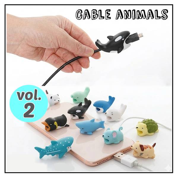 【vol.2】ケーブルバイト 動物 ケーブル保護カバー 断線防止 シリコン Lightning iPhone USB Type-C 充電ケーブル プロテクター かわいい アニマル