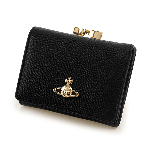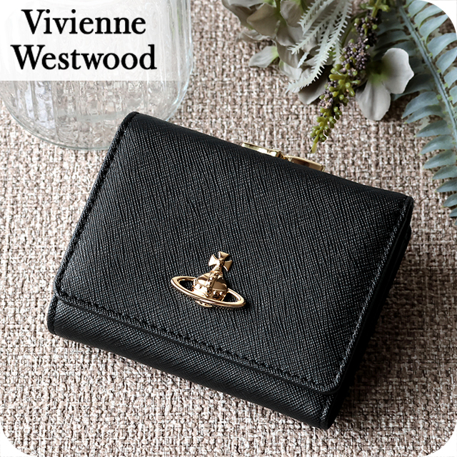 ヴィヴィアン ウエストウッド 二つ折り財布 二折財布 レディース ブランド Vivienne Westwood SAFFIANO がま口 ロゴ 51010018 L001N N403 BLACK ビビアン