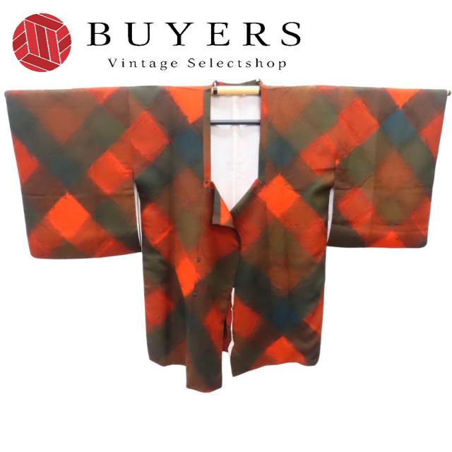 中古 道行・道中 道行コート 正絹 ブラウン系 ブラック系 レッド系 格子 チェック モダン 和装 呉服 和服 きもの レディース 女性