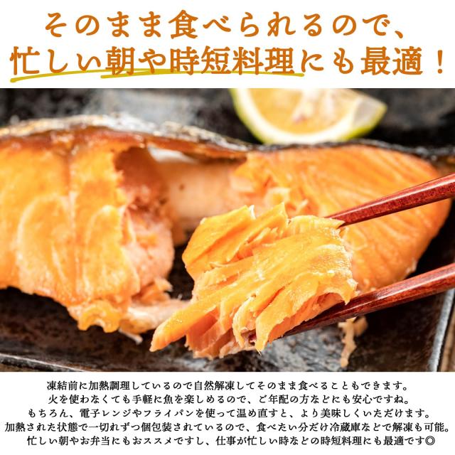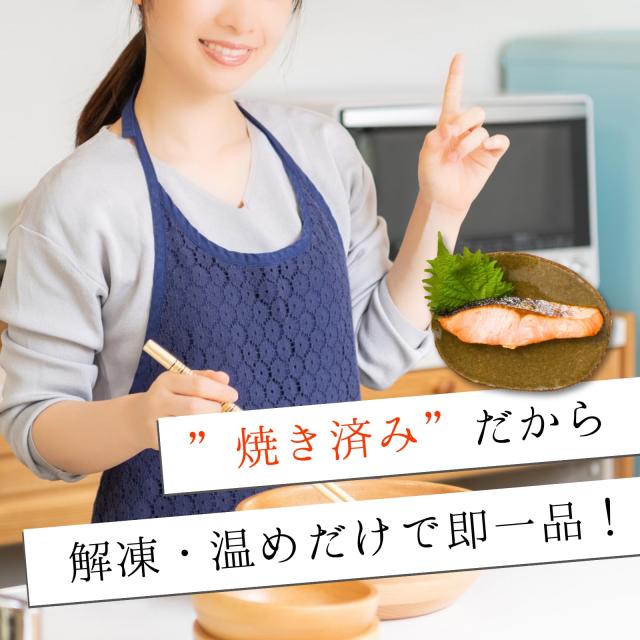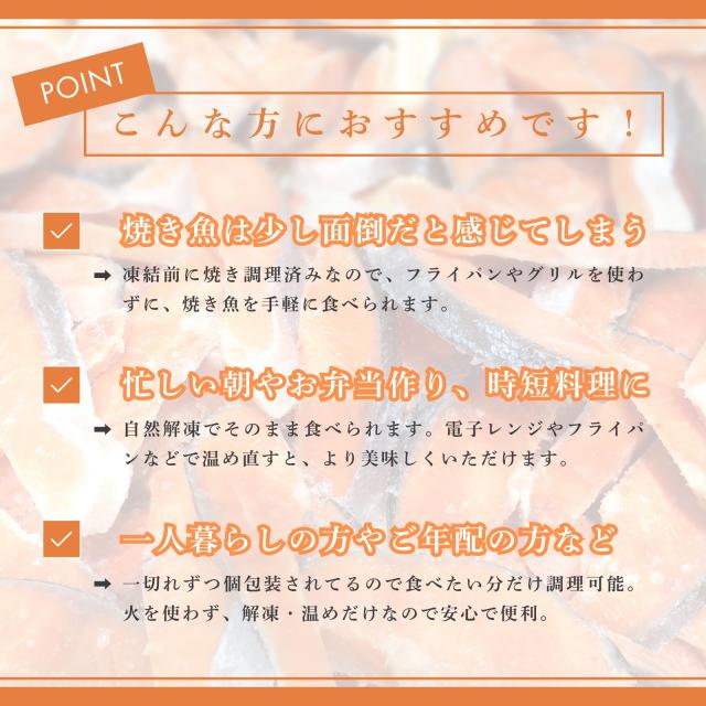 シンプルに塩で味付けした銀鮭の切り身を、 凍結前に加熱調理しているので自然解凍してそのまま食べることもできます。