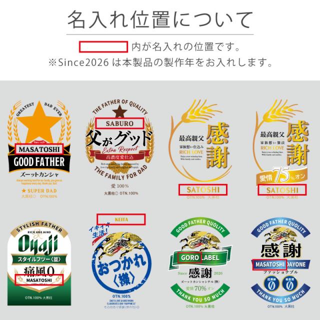 \お父さんを笑顔に/思わず笑えるビール風ロゴデザイン。名入れできるから父の日・誕生日・長寿祝いの記念ギフトにおすすめ!