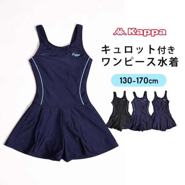 カッパ スクール水着 女の子 ワンピース 紺色 黒 キュロット スカート 130cm 140cm 150cm 160cm 170cm 水着 キッズ ジュニア 女子 シンプル 子供用 プール 水泳 海 kappa 小学生 中学生 スイミング ネイビー 無地 送料無料