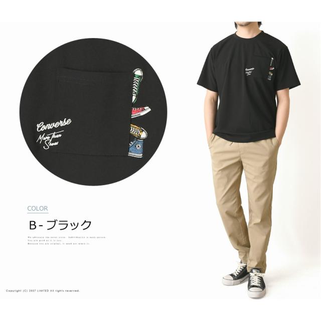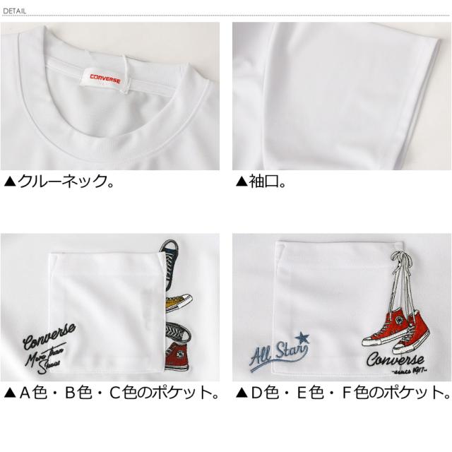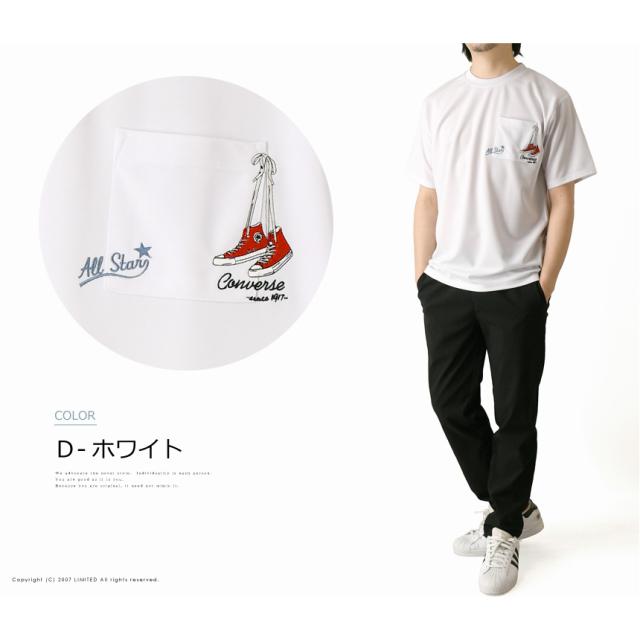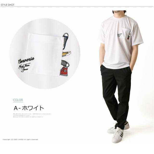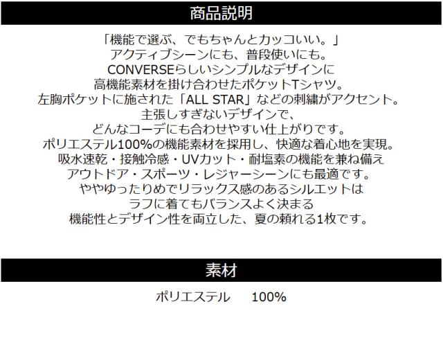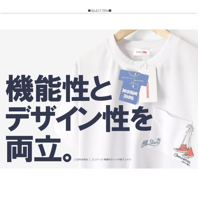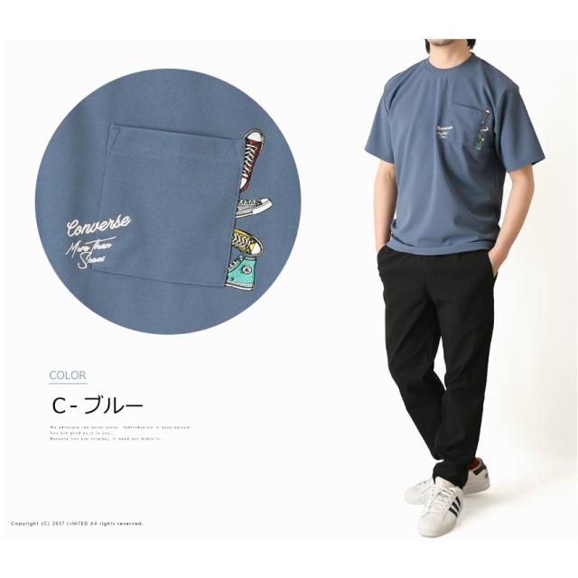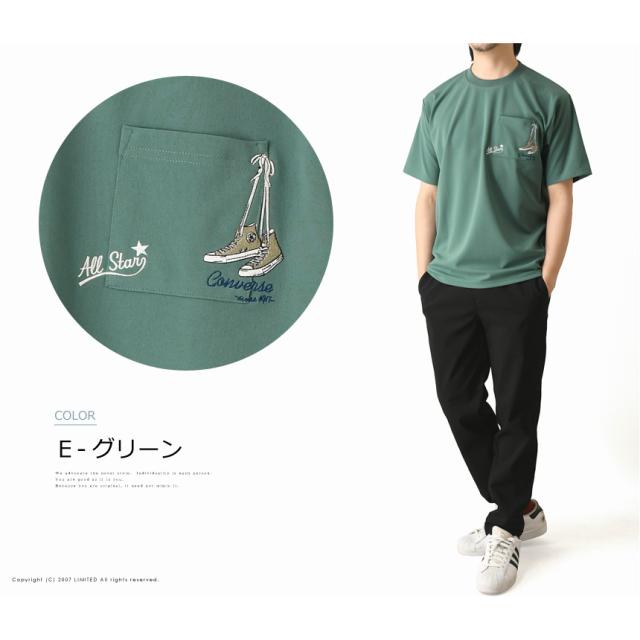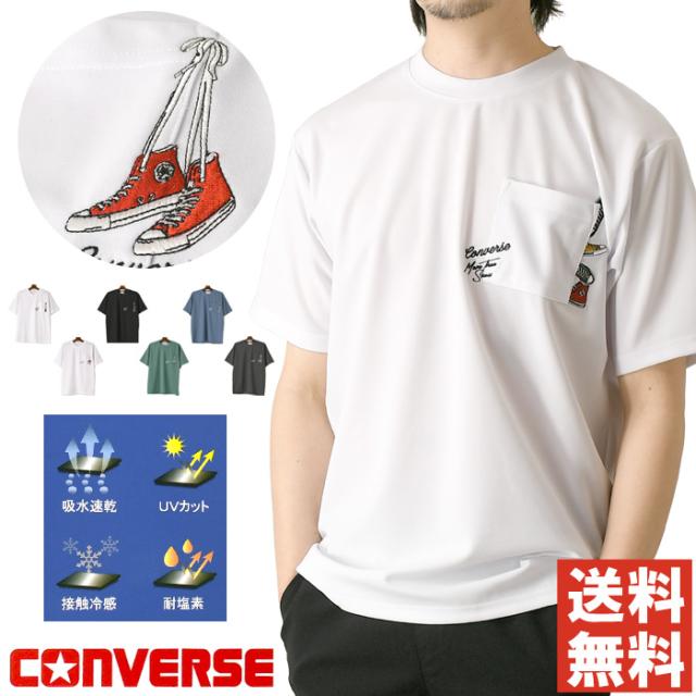 CONVERSE コンバース Tシャツ メンズ 半袖 ポケットT 刺繍 吸水速乾 UVカット 接触冷感 耐塩素 ゆったり シルエット ポリエステル 春夏 【H5-1571】 通販A15