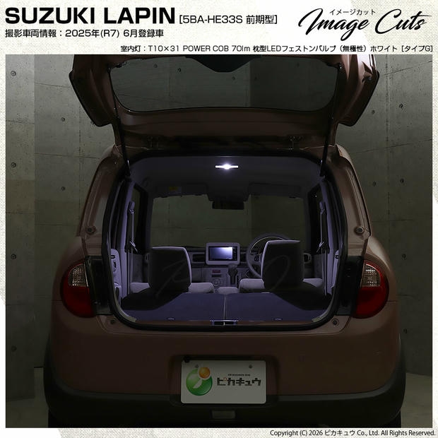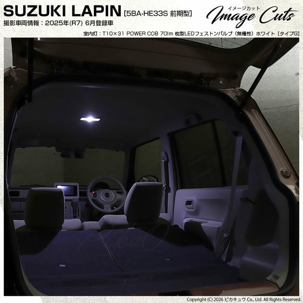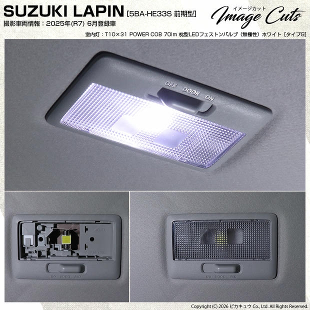 ピカキュウ, T10×31 LED, POWER COB, 70lm, T10×31 無極性 LED, ルームランプ用 LED, 定電流回路, ハイブリッド車対応LED, ホワイト, ルームランプ, 室内灯, ラパン LED,LAPIN LED,ラパン HE33S,ラパン HE93S,SUZUKI ALTO LAPIN,ラパン 室内灯 LED,HE33S ルームランプ LED