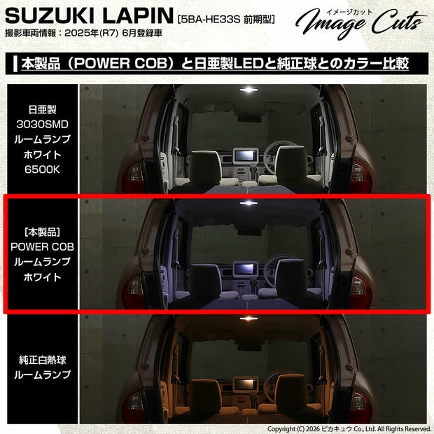 ・本製品は、純正白熱球と交換して使用するLEDバルブです。取り付けるランプが純正LEDランプの場合は交換できません。 ・車両型式と一致していても、特別仕様車・グレード・オプション装備・製造年月日などにより適合が異なる場合がございます。必ずご購入前に、車両に装着されているバルブ規格を取扱説明書などでご確認ください。 [画像車両:SUZUKI LAPIN 型式:5BA-HE33S 令和7年6月登録車両] |