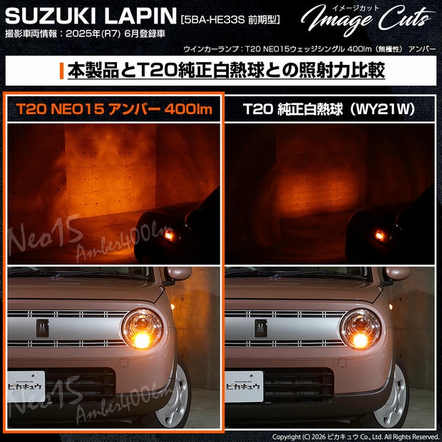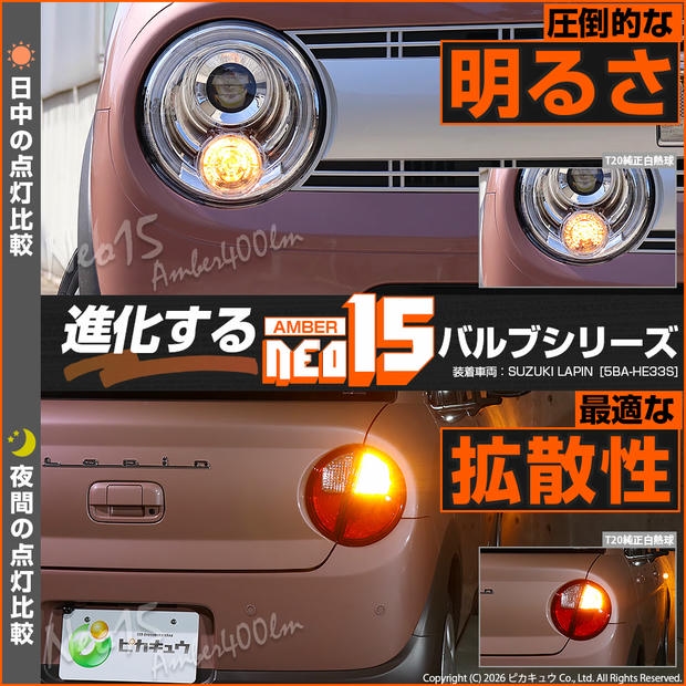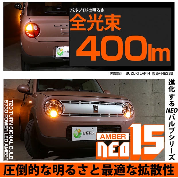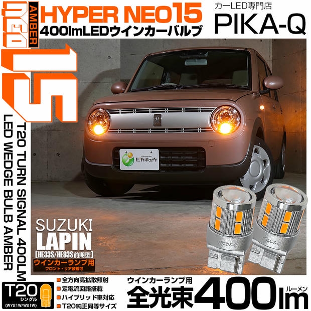 ピカキュウ,T20 LED,T20 LED 400lm,LED ウインカー,ウインカー LED 明るい,NEO15,T20 ウインカー 明るい,ウインカー アンバー,アンバー LED,T20 アンバー,400lm ウインカー,WY21W LED,W21W LED,T20 ウインカーバルブ,フロント ウインカー LED,リア ウインカー LED,全方向照射 LED,定電流回路 LED,無極性 LED,スズキ ラパン LED,LAPIN LED,ラパン HE33S,ラパン HE93S,SUZUKI LAPIN,スズキ ラパン ウインカー LED,HE33S ラパン ウインカー LED