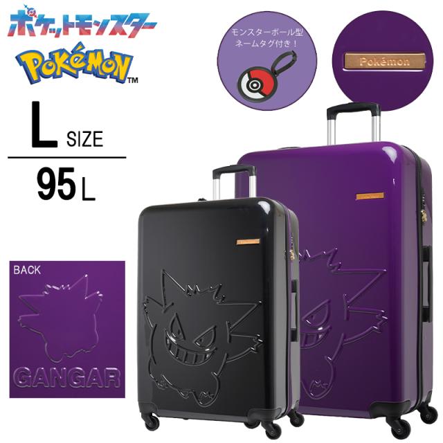 ポケモン ゲンガー スーツケース キャリーケース PK-0908-69 Lサイズ 95L モンスターボールタグ PC+ABS ブラック パープル 型押しデザイン 大容量 長期旅行 帰省 Nintendo ポケットモンスター