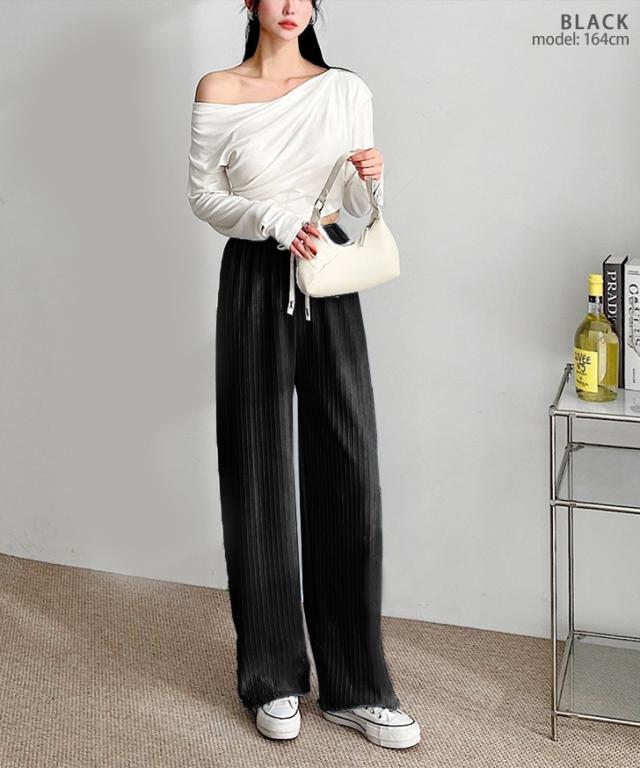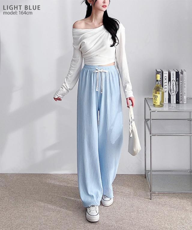 ストレッチドローストリングプリーツワイドパンツ レディース ボトムス 春 夏 薄手 ウエストゴム 伸縮 無地 デイリー ルームウェア 部屋着 お出かけ アウトドア おうち時間 シンプル きれいめ カジュアル 長ズボン プリーツパンツ リブパンツ ゆったり ハイウエスト 動きやすい 歩きやすい かわいい 韓国 旅行 パジャマ アウトドア おうち時間 イージーパンツ ロングパンツ リラックスパンツ ロング丈 高身長 長め 大きい 大きめ 伸びる 薄い 薄め 軽い 軽量 リブ 畝 凹凸 エンボス 洗える 洗濯 ウォッシャブル ワンマイルウェア 疲れにくい ナチュラル リゾート 可愛い 普段着 美脚 脚長 韓国ファッション きれいめカジュアル オールシーズン ロングシーズン 通年 春夏 秋 秋冬 柔らかい やわらか ふんわり 普段使い ラフ 通学 スポーティー ジム ワンマイル k-pop ダンス ヒップホップ 着回し レジャー ピクニック キャンプ BBQ レッスン ランニング ジョギング トレーニングパンツ ラウンジウェア バカンス トラベル 買い物 ショッピング 太ゴム 外出 野外 フェス イージーケア ノーアイロン ズボン ママ 学生 大学生 高校生 ライブ コンサート 白 黒 グレー ピンク ブルー 水色 ホワイト ブラック アイボリー チャコール 灰色 10代 20代 30代 40代 50代 大人 ミセス 婦人 女性 シワになりにくい 体型カバー ウエスト絞り ウエストリボン ウエスト紐 ドロスト 紐付き ひも付き 暑さ対策 熱中症対策 お泊り 宿泊 ナイトウェア 睡眠 就寝 お風呂上がり サウナ 風呂 温泉 銭湯 スパ 岩盤浴 ストレート ぽっちゃり マタニティ 妊婦