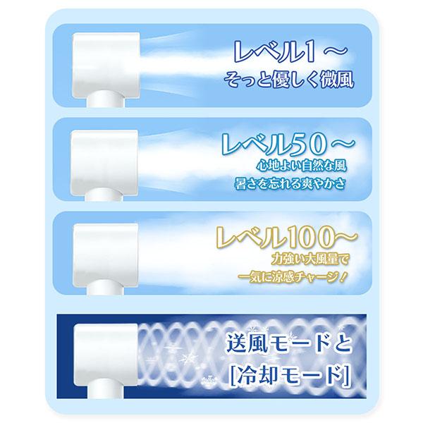 ・【5段階+100段階風量調整】短押しで1・25・50・75・100%の5段階切替、長押しで1〜100段階の細かな風量調整が可能。シーンに応じた最適な風をお楽しみいただけます。