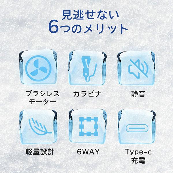 ・【6WAY多機能使用】氷冷プレートを利用した冷却、手持ち、腰掛け、首掛け、折りたたみ、卓上使用まで、さまざまなシーンに対応!・【液晶ディスプレイ搭載】バッテリー残量がひと目でわかるデジタル表示。充電タイミングもすぐに把握できます。
