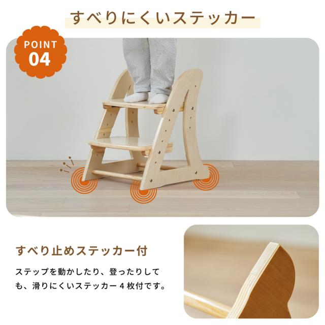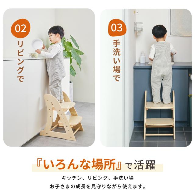 | 商品説明 | ●チェア&ステップの2wayで使用可能 【チェア時】 ●使用年齢:生後7か月頃(お座りができるようになって)から36か月まで ●座面の高さは3段階調節可能 ●お食事やお遊びの時など様々な場面で活躍 【ステップ時】 ●使用年齢:生後18か月頃から体重80kgまで ●安定感のある2段式ステップ ●大人も使える頑丈な作り ●高さは3段階で調節可能 ●すべり止めステッカー付き ●ママパパのお手伝いの時など、お子さまの「ひとりでできた」をサポートするアイテム ●丸みのあるフォルムで優しい印象 ●角が少ないのでお子様も安心して使用可能 |