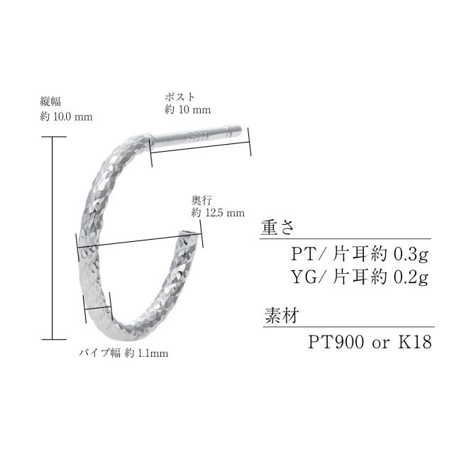 重量:片耳 プラチナ (Pt900)約0.3g / イエローゴールド(K18YG) 約0.2g