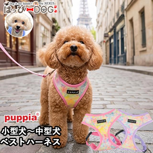 犬 ハーネス 気管に優しい おしゃれ 小型犬 中型犬 胴輪 軽量 柔らかい 抜けにくい 簡単装着 可愛い タイダイ柄 犬用ハーネス 小型犬 中型犬 PUPPIA ベストハーネス ソフトハーネス 子犬 パピー シニア犬