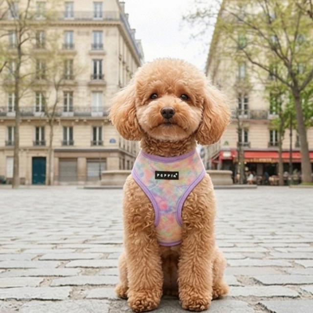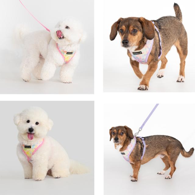 やさしい色合いのタイダイ柄がとっても可愛い犬用ハーネスです♪