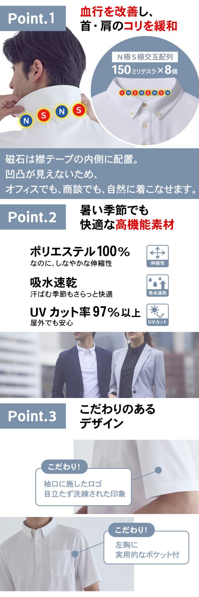 リカバリーに新しいスタイルを。着るだけで整う、ビジネスポロシャツ。吸水速乾×高伸縮で快適、磁気の力で血行を促進しコリを緩和