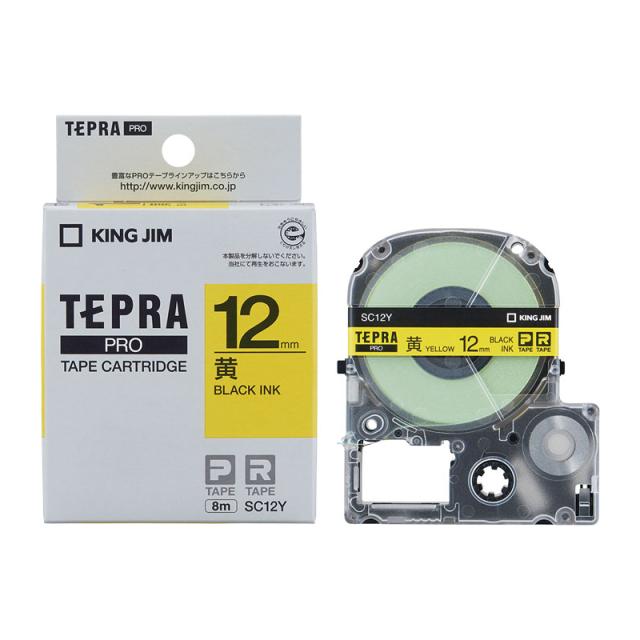 テプラ PRO テープカートリッジ 黄ラベル/黒文字 12mm×8m 日本製 SC12Y キングジム