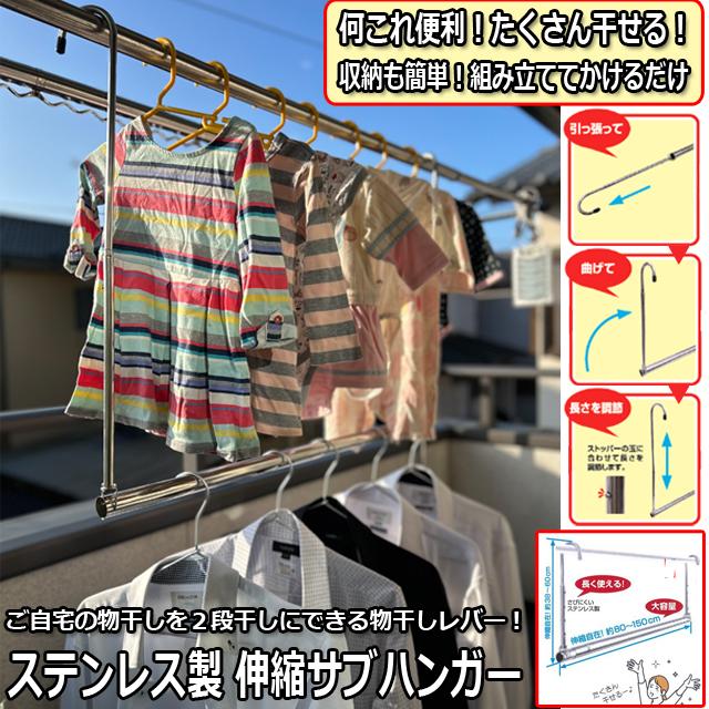 ステンレス製 伸縮サブハンガー 物干し竿 大家族の洗濯物干し 大容量洗濯物干し竿 約縦2.7×横85~159×高さ37~60cm 2段干し 洗濯ハンガー