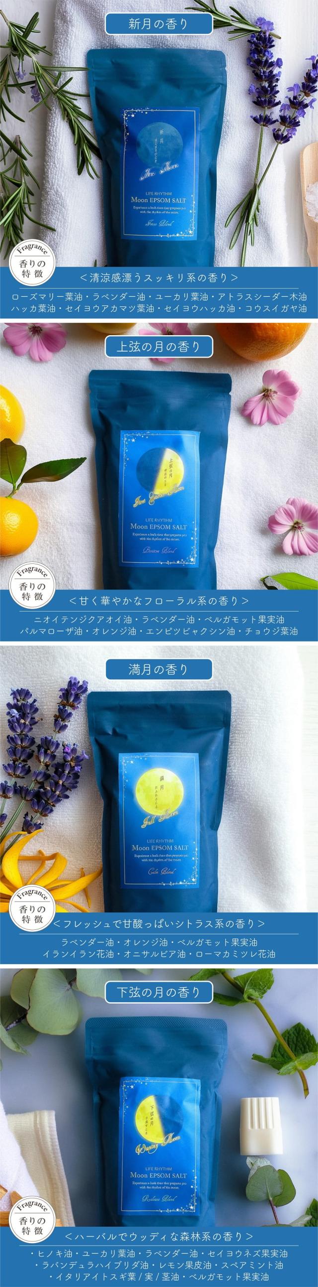 入浴剤 LIFE RHYTHM ライフリズム ムーンエプソムソルト 600g 計量スプーン付属 全4種類 国産 入浴6回分 天然精油配合 硫酸マグネシウム ミネラル 無添加 浴用 バスソルト アロマ フレグランス バスグッズ バス用品 入浴 母の日 贈り物 ギフト いい香り