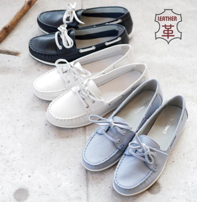 やわらかスムースレザー・レースアップモカシンデッキシューズ★