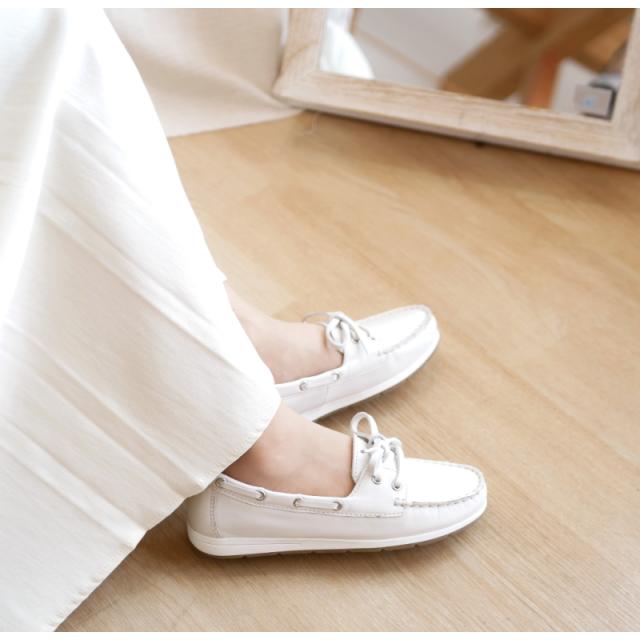 モカシン レディース 本革 レザー デッキシューズ 2.5E 軽量 滑りにくい 屈曲性 低反発クッション フラット ラウンドトゥ 歩きやすい 足に馴染む 痛くない