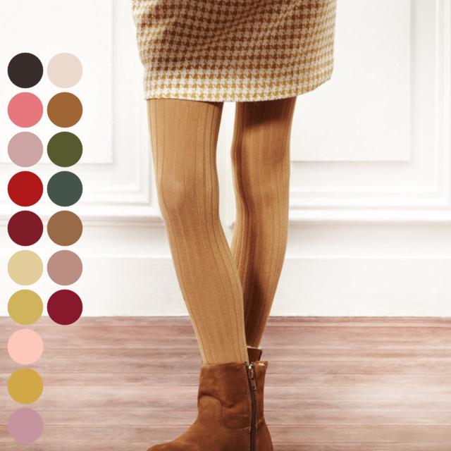 縦のラインが脚をスッキリ見せてくれるリブタイツです。いずれも発色が良く、シンプルな服装のちょっとしたアクセントの差し色にもピッタリなアイテムです。