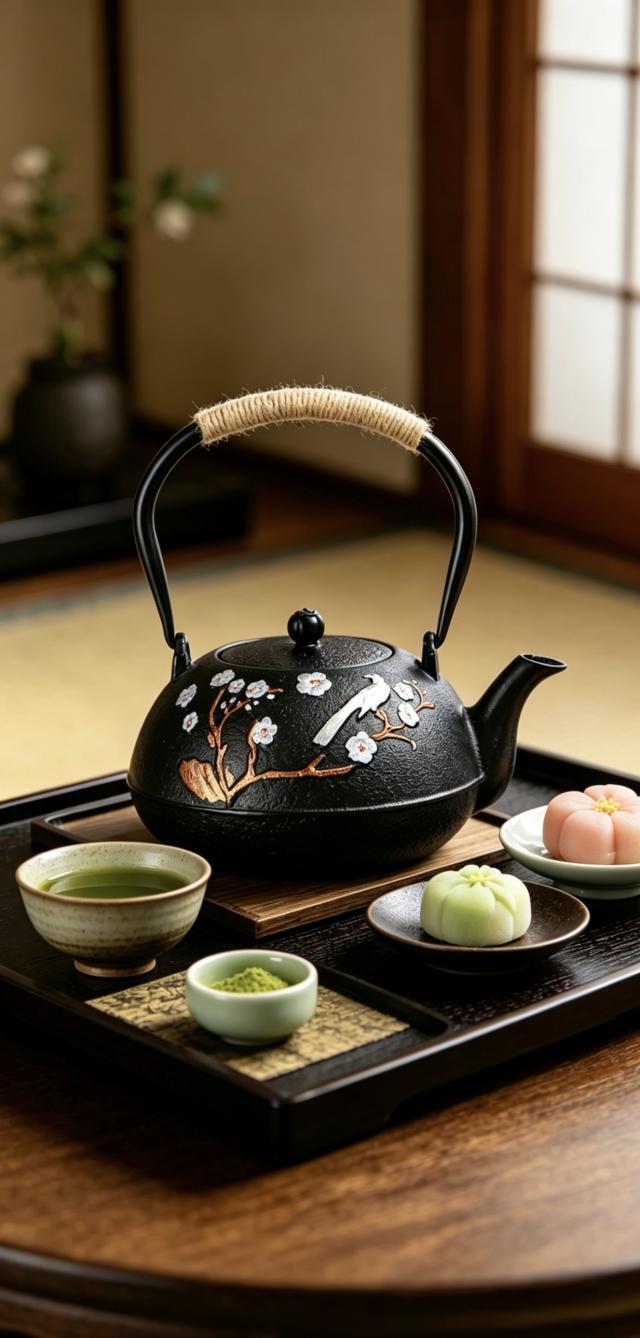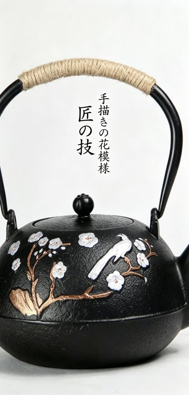 日本の伝統工芸「南部鉄器」の風合いを再現した、手描き梅鵲柄の鉄瓶が登場?