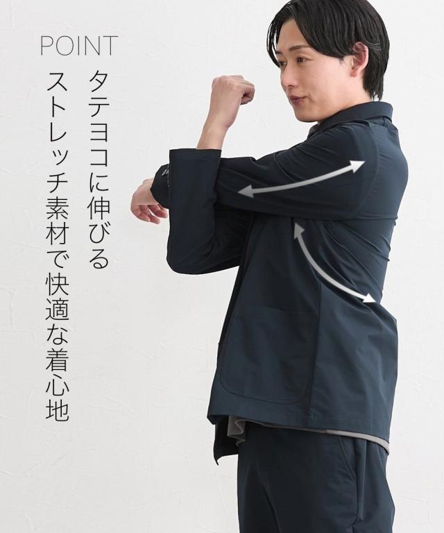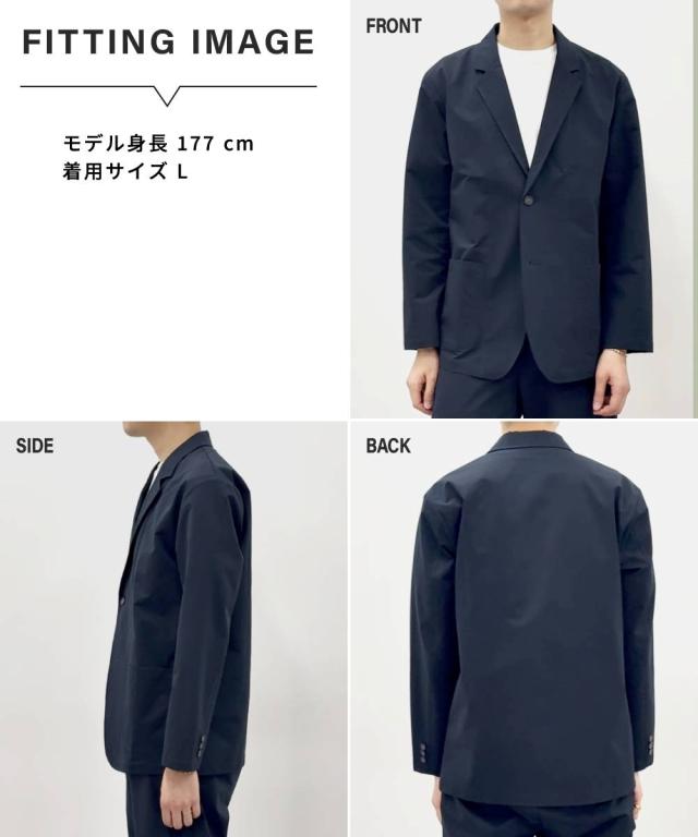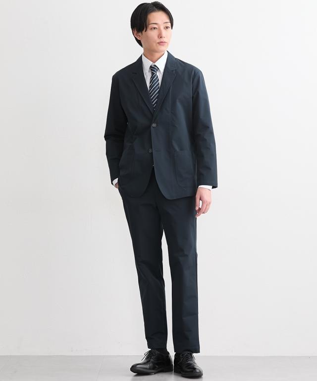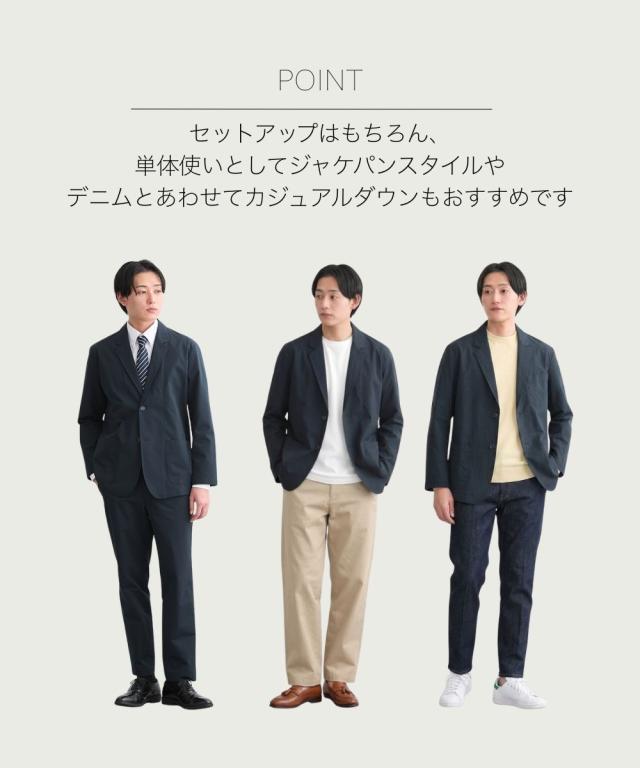 ビジネスシーンから休日のジャケパンスタイルまで、幅広く活躍するネイビーテーラードジャケット。 タテ・ヨコの両方向に伸びる2WAYストレッチ素材を採用しているため、腕の上げ下げやデスクワーク中も窮屈さを感じさせません。生地は軽量でありながら程よいハリ感があり、きちんとした印象。 また、忙しい現代人に嬉しいマシンウォッシャブル仕様となっており、ご家庭の洗濯機で手軽にお手入れが可能です。汗をかきやすい季節でも、クリーニングに出す手間を省いて常に清潔な状態を保てます。 同素材のパンツと合わせれば、洗練されたセットアップスタイルも完成します。 ■デザイン ラペルの幅は大きくなりすぎないよう設計し、襟を上下に分けるゴージラインはやや低めにし、ドレスシャツだけでなくカットソーやニットと合わせてもしっくりように設計し日常使いにぴったりのデザイン。 ■素材 軽量で薄手ながらハリ感のある素材。タテヨコストレッチで快適な着心地です。 ■おすすめのおしゃれスタイリング セットアップはもちろんジャケパンスタイルにも。デニム等ややカジュアルなボトムスと合わせてドレスアップするのもおすすめです。 ●スタッフ着用コメント 身長:177cm 普段のサイズ:L