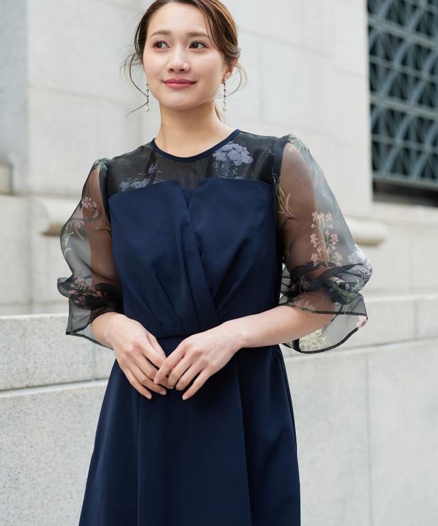 パーティドレス ワンピース レディース 結婚式 パーティー ドレス ビスチェ風 プリント オーガンジーフレア 春 夏 秋 冬 二次会 | 4L/5L | ニッセン nissen