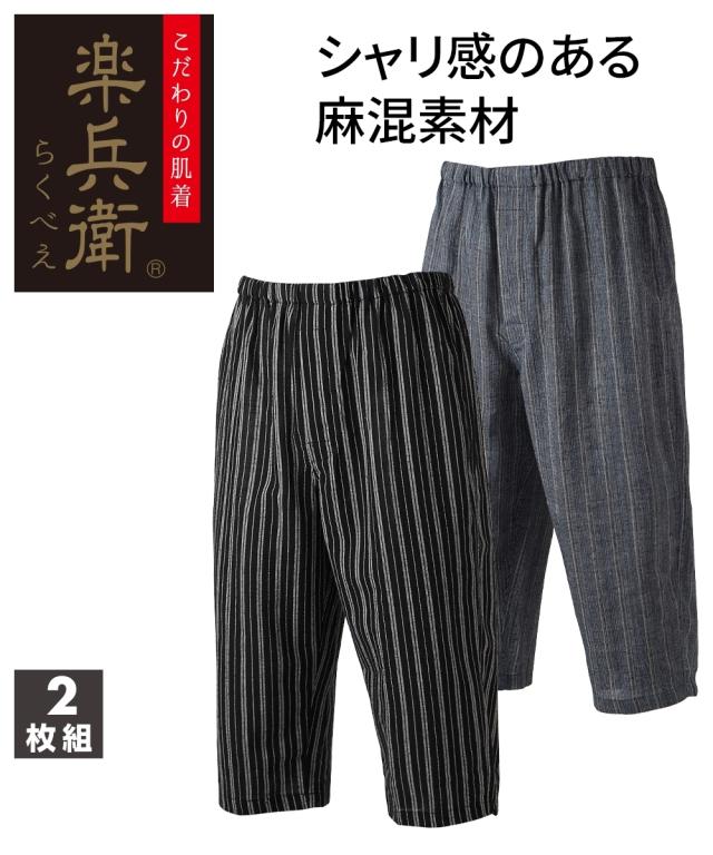 ステテコ ロングパンツ メンズ 楽兵衛 さらっと麻混 前開き 7分丈ステテコ パンツ 2枚組 夏 インナー 男性 肌着 下着 | M/L/LL | ニッセン nissen