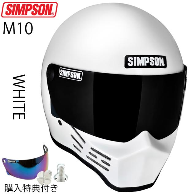 在庫販売 SIMPSON シンプソンヘルメット モデル10 M10 WHITE 2型内装 ホワイト 白 フルフェイスヘルメット Model10 SG規格
