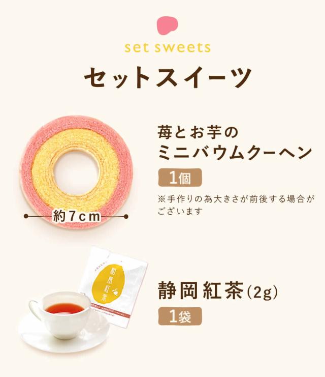 【選べるセメントポット】1個 【苺とサツマイモのバウムクーヘン】1個 【静岡紅茶(2g)】1袋 ◆苺とサツマイモのバウムクーヘン 賞味期限:2026年5月22日 原材料:卵(国産)、砂糖、ショートニング、マーガリン、小麦粉、乳等を主要原料とする食品、さつまいも、バター、苺果汁加工品、アーモンド加工品、さつまいもペースト、植物油脂、洋酒/加工澱粉、トレハロース、乳化剤、膨張剤、ソルビトール、香料、着色料(コチニール、ラック、カロチン)、酸味料、(一部に卵・小麦・乳成分・アーモンド・大豆を含む) ◆静岡紅茶(2g) 1袋 賞味期限:製造から約1年(未開封時)※パッケージ記載 原材料:緑茶(牧之原市) 【発送の温度帯】 常温便にてお届け |