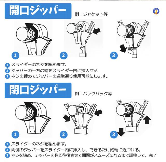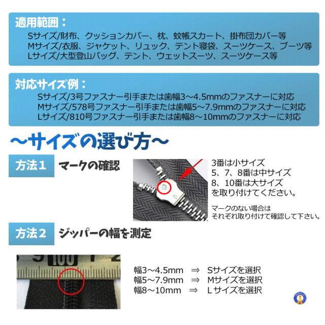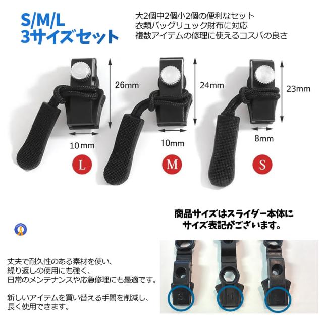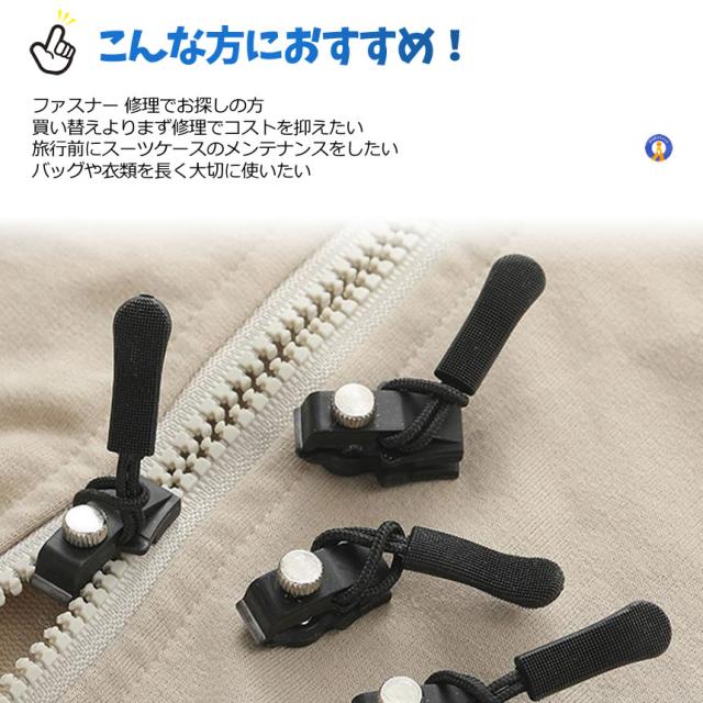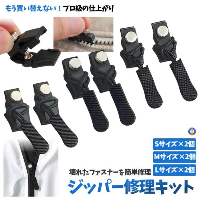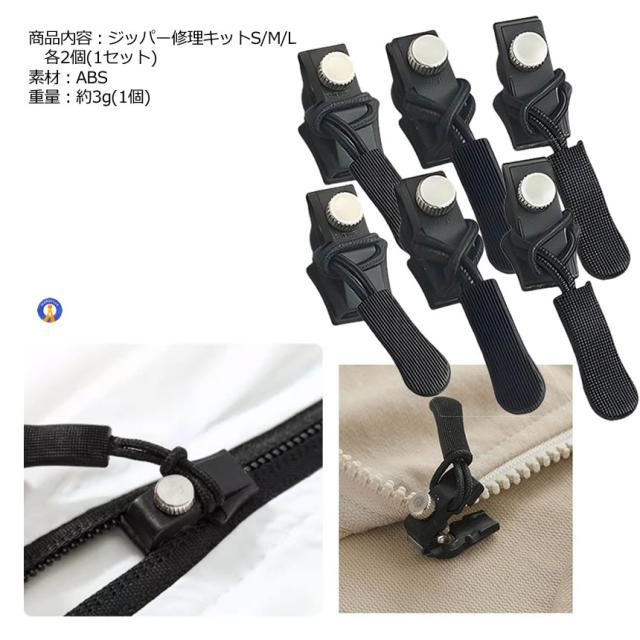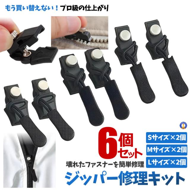 ジッパー修理キット 6個入り 大中小サイズセット 万能 ジッパー交換 スライダー 修理 DIY ZIPPER
