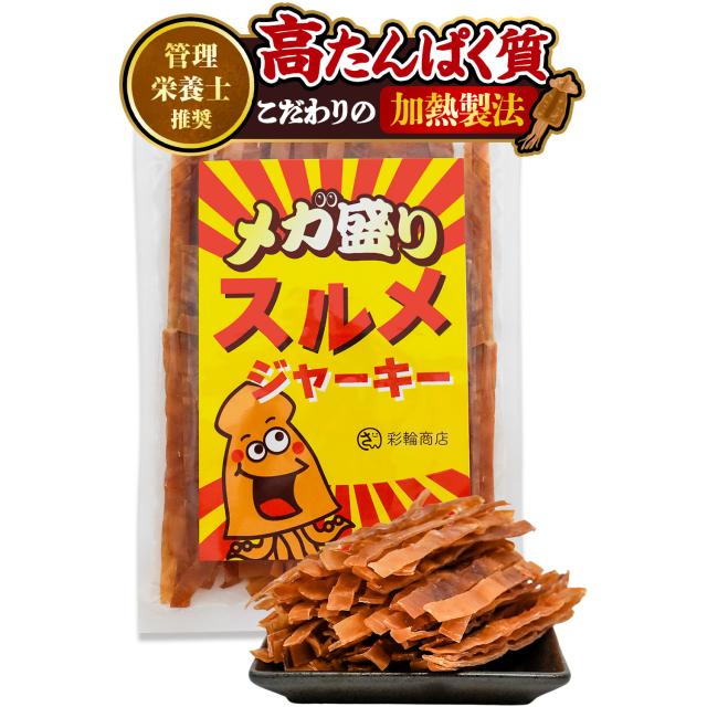 【メガ盛りスルメジャーキー】噛めば噛むほど旨みジュワッ!甘じょっぱい定番味!いかの旨みと甘さのバランスが絶妙で、とまらなくなる美味しさです。