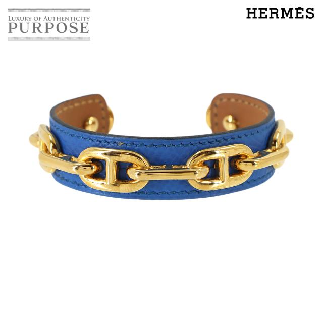 新品同様 エルメス バングル シェーヌダンクル レザー バングル ブルー ゴールド アクセサリー レディース 90318853 【中古】ブランド