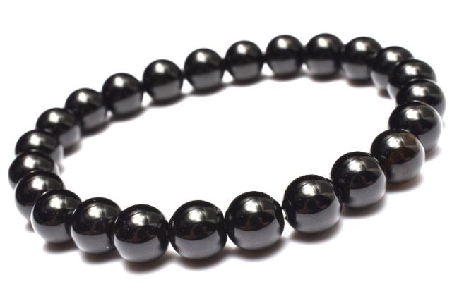 【1点物】希少レア 黒隕石 テクタイト 8mm ブレスレット 金運・仕事運_MC8248