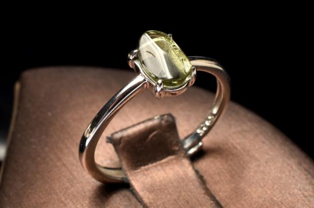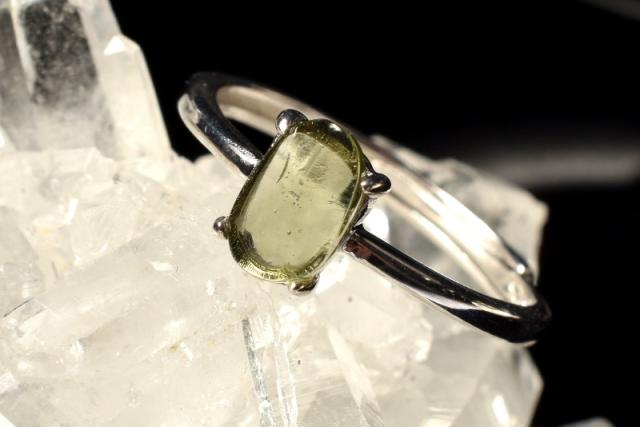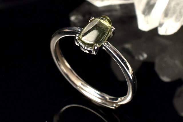 【1点物】シルバー925◇入手困難 モルダバイト 8x5mm 指輪リング(サイズ調整可) 金運・仕事運【ネコポス送料無料】_PD1418