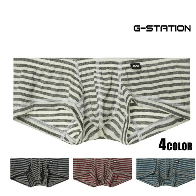 メンズボクサーパンツ G-Station/ジーステーション グレーボーダー ショート丈 ボクサーパンツ スクエアボクサー 横縞 縞 立体縫製 メンズ 男性下着 下着 インナー ローライズ