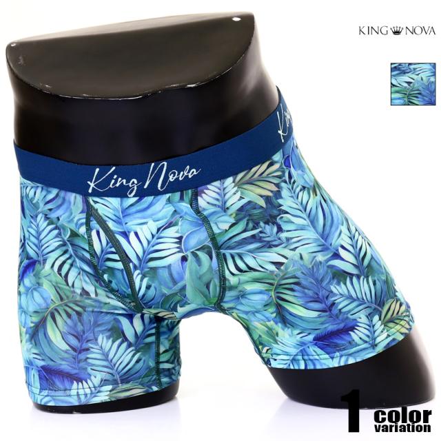 ボクサーパンツ メンズ KING NOVA/キングノバ ひんやりStyle ボタニカル柄 植物 ボクサーパンツ 男性下着 メンズ パンツ 前開き プリントウエストバンド 接触冷感 夏