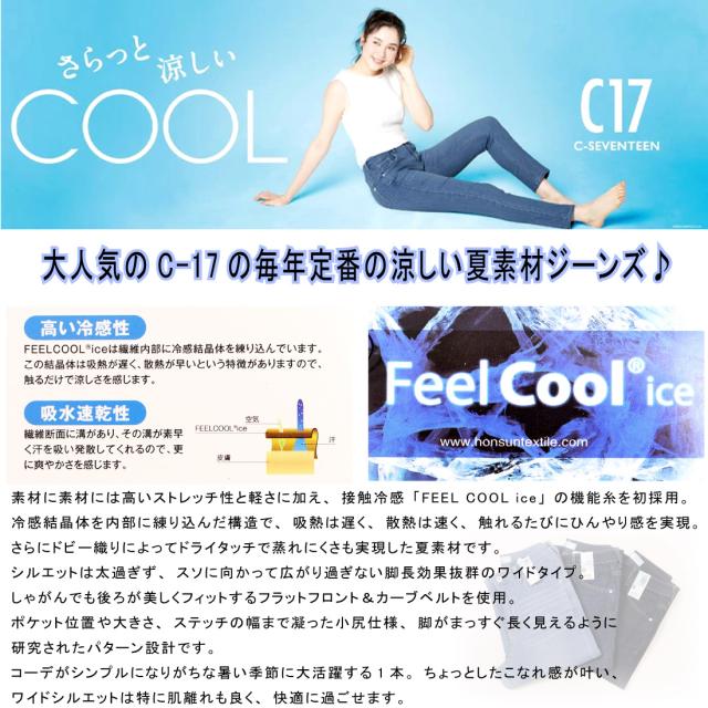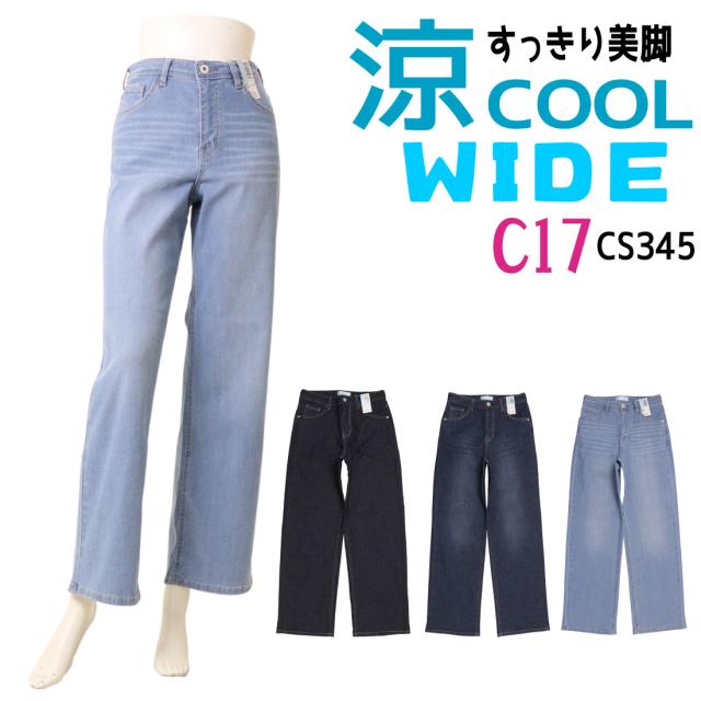 C-17 夏 デニム ジーンズ CS345 COOL ワイド デニムパンツ レディース 涼しい サマーデニム 涼しいパンツ ストレッチ ドライタッチ C17 夏用デニム