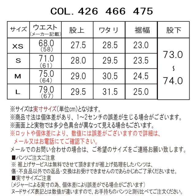 ※ 裾上げサービスは無料でさせて頂きますが裾上げ処理をしたパンツは、
