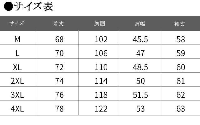 | 【サイズ】 | M、L、XL、2XL、3XL、4XL |