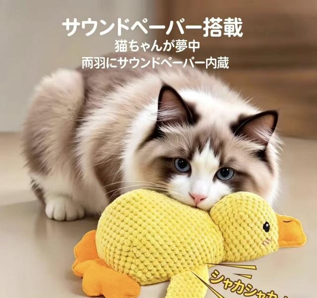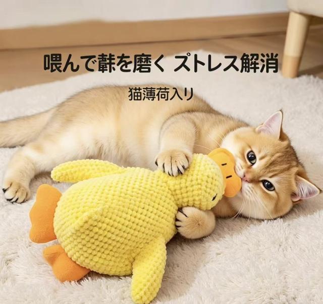 猫用おもちゃ アヒル形 猫薄荷入り サウンドペーパー内蔵 パイル生地 噛み傷に強い 全猫種対応