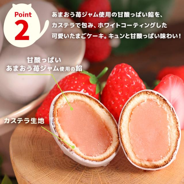 いちごあん(白生あん、砂糖、水飴、いちごジャム(砂糖、いちご(あまおう)、ぶどう糖)、寒天、こんにゃく粉)(国内製造)、油脂加工食品(植物油脂、砂糖、乳糖、全粉乳、脱脂粉乳、ココアバター)、小麦粉、加糖練乳、液卵、マーガリン、砂糖、脱脂粉乳、オリゴ糖/ソルビトール、膨脹剤、乳化剤、香料、増粘多糖類、着色料(紅麹)、酸味料、pH調整剤、(一部に小麦・乳成分・卵・大豆・りんごを含む)