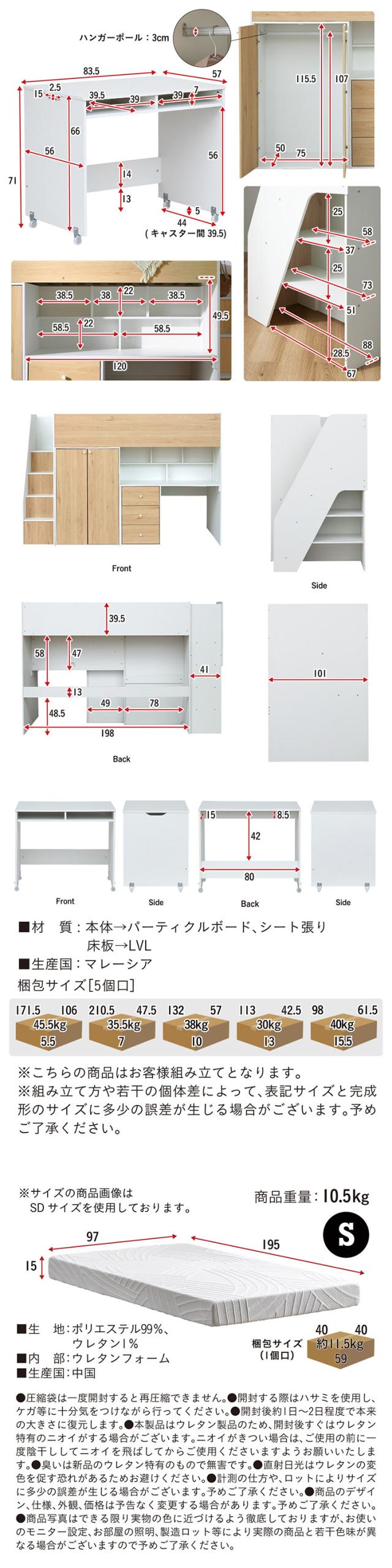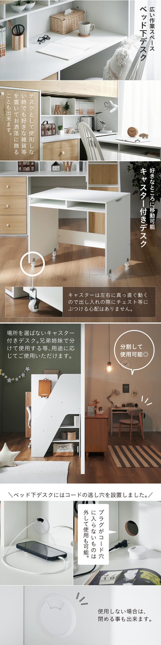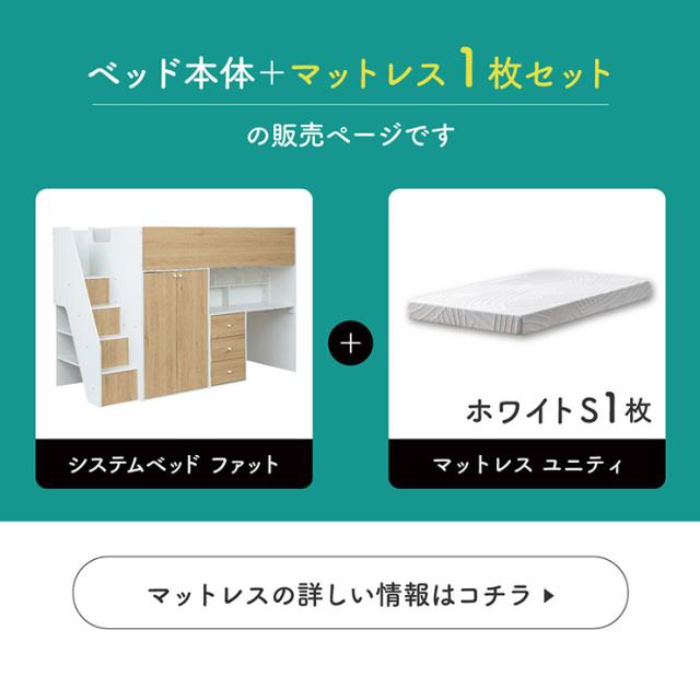 システムベッド ハイタイプ 中学生 デスク 学習机 大人 マットレス シングル Phat(ファット) + Unity(ユニティ) ホワイト システムベット デスク付き 子供 ロフトベッド 階段 木製 机付き おしゃれ 北欧