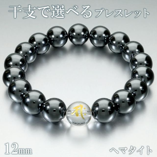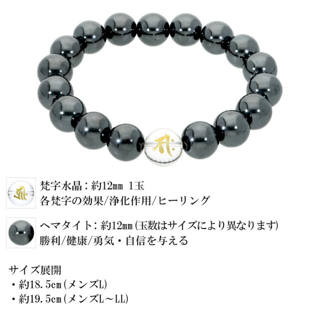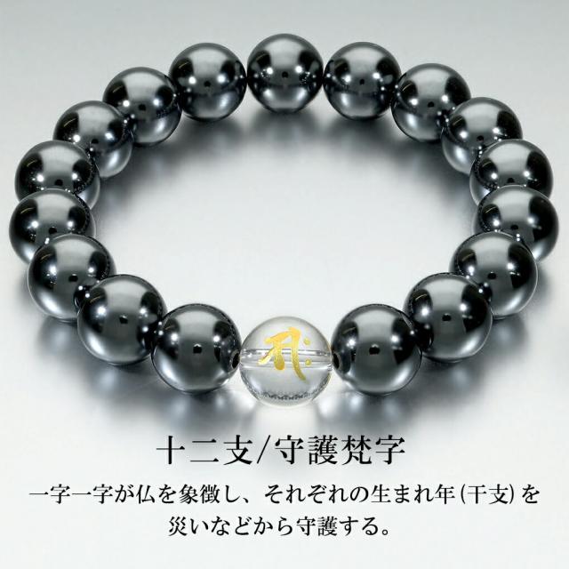 梵字 十二支 ヘマタイト 数珠 ブレスレット メンズ 12mm 18.5〜19.5cm M〜LL サイズ 守護 干支 お守り 天然石 パワーストーン アクセサリー 腕輪