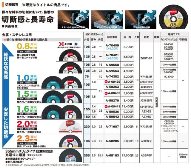(マキタ) A-00435 切断砥石 金属・ステンレス用 10枚入 外径105mm 厚み1.5mm AZ60P-BF2 makita ネコポス可 ●
