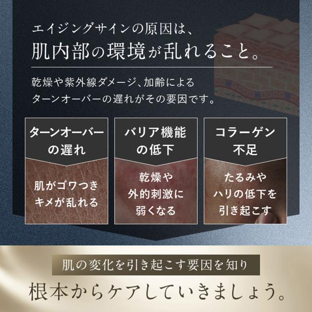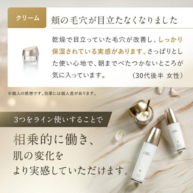 ローションで肌を整え、エッセンスでハリ・ツヤを与える。そしてクリームで閉じ込める!