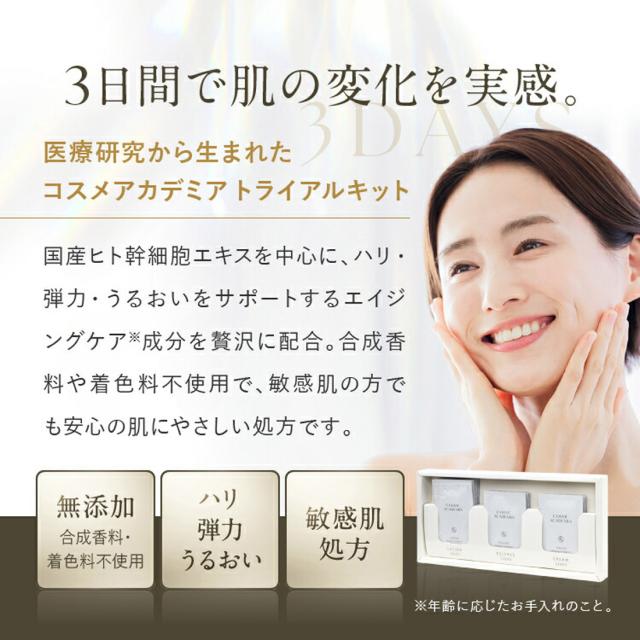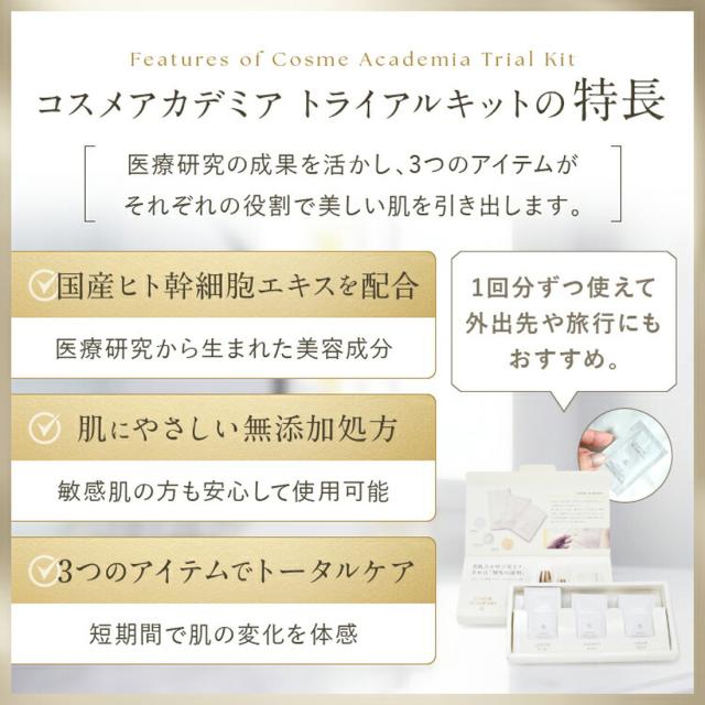 ヒト幹細胞培養液 トライアルセット スキンケア 3点 お試し 体験キット 【沖縄県除き送料無料】 化粧水 美容液 クリーム ヒト脂肪幹細胞培養液エキス配合 高濃度 エイジングケア コスメアカデミア 高保湿 ハリ 乾燥肌 COSME ACADEMIA 40代 50代