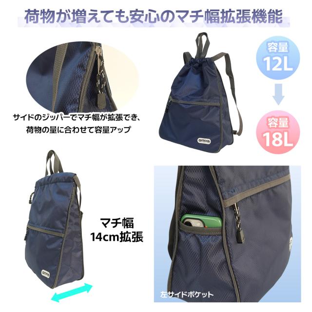 ナップサック ナップザック ジムサック 巾着リュック サブバッグ 体操服入れ 体操着袋 部活バッグ スポーツバッグ 軽量 折りたたみ 大容量 拡張 ファスナー付き ダイヤリップ リップストップ アウトドアプロダクツ 通学 林間学校 修学旅行 男女兼用