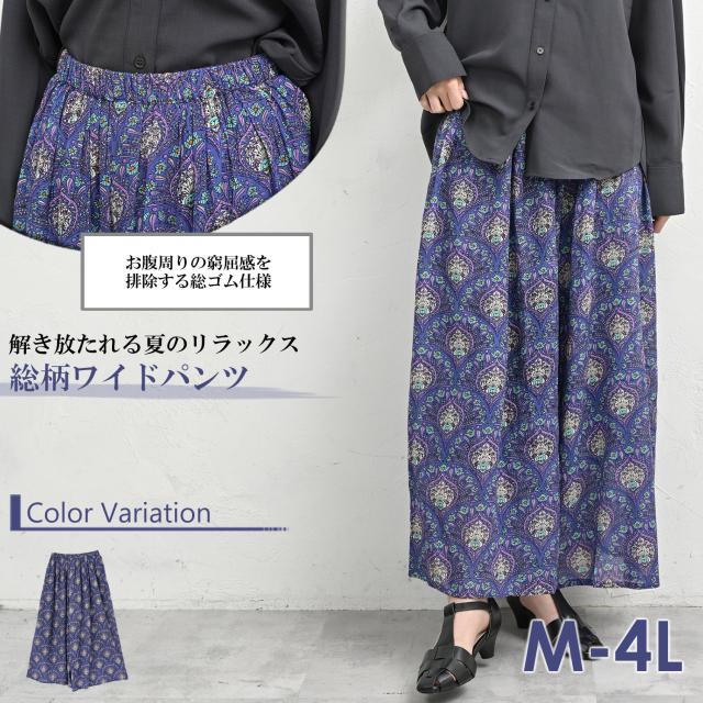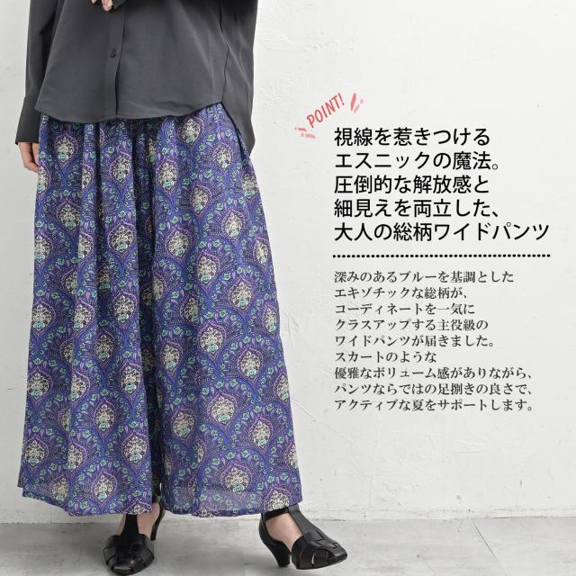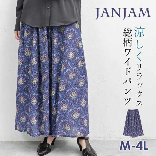 【JANJAM解き放たれる、夏のリラックス】ワイドパンツ ワイド フレアパンツ エスニックワイドパンツ エスニックパンツ 総柄 エスニック柄 民族柄 ピーコック柄 ウエストゴム ロング丈 マキシ丈 10分丈 12分丈 十分丈 裏地あり 春服 夏服 春物 夏物 春パンツ 夏パンツ 春夏パンツ 春夏ファッション 裏地あり 裏地付き 股上深め ゆったり 長ズボン ズボン 体型カバー 下半身カバー 太ももカバー ヒップカバー 楽ちん 着痩せ 細見え 美脚 美脚効果 ワイドシルエット ルーズ 美シルエット スタイルアップ 締めつけない やや透ける 透け感 伸びない生地 軽い 軽量 薄い 薄手 リラックスパンツ 大人 カジュアル エスニック リラックス 大人カジュアル 大人エスニック 個性的 おしゃれ きれいめ キレイ目 綺麗め きれい かわいい 可愛い かっこいい 恰好良い 着こなし 旅行 プール 海 トレンド 春コーデ 夏コーデ ファッション 大きめ ぽっちゃり プラスサイズ 女性 女性用 婦人 婦人用 ミセス 30代 40代 50代 40代女性ファッション 50代女性 50代ファッション レディースファッション 2026 夏新作 春夏 春 夏 紫 青 パープル ブルー M L LL 3L 4L 2L XL XXL XXXL 2XL 3XL 9号 11号 13号 15号 17号